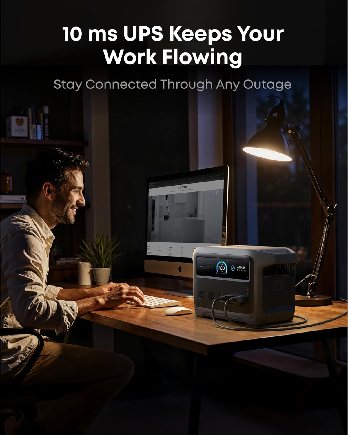 Manage Power with TOU Mode: Use the Anker app to intelligently control usage—great for remote work setups and off‑grid monitoring to avoid peak charges.