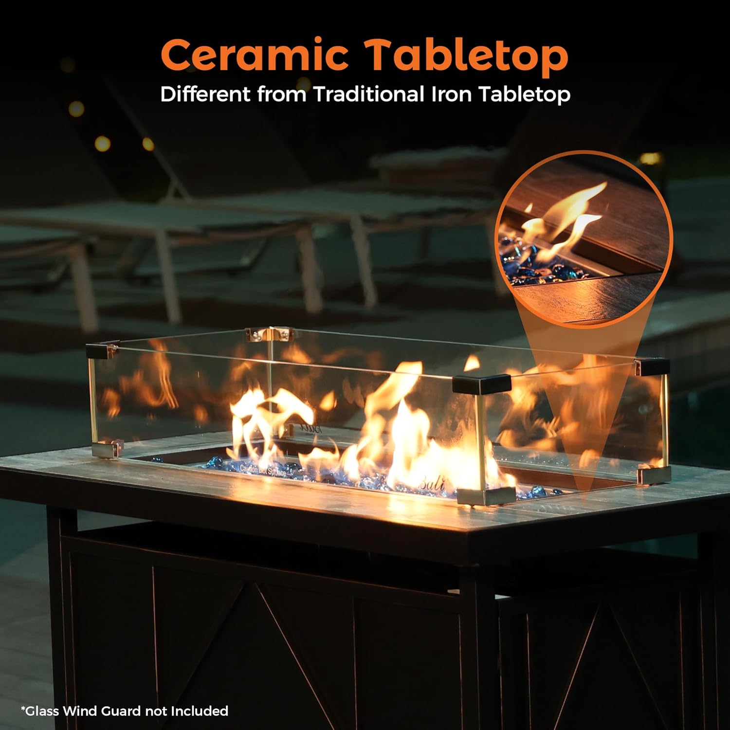 2-in-1 FireTable Design: This gas fire pit with cover lid combines the warmth of a traditional firepit with the practicality and convenience of the table, beautiful real ceramic tabletop with steel stamped wicker base creates additional decoration in any living place