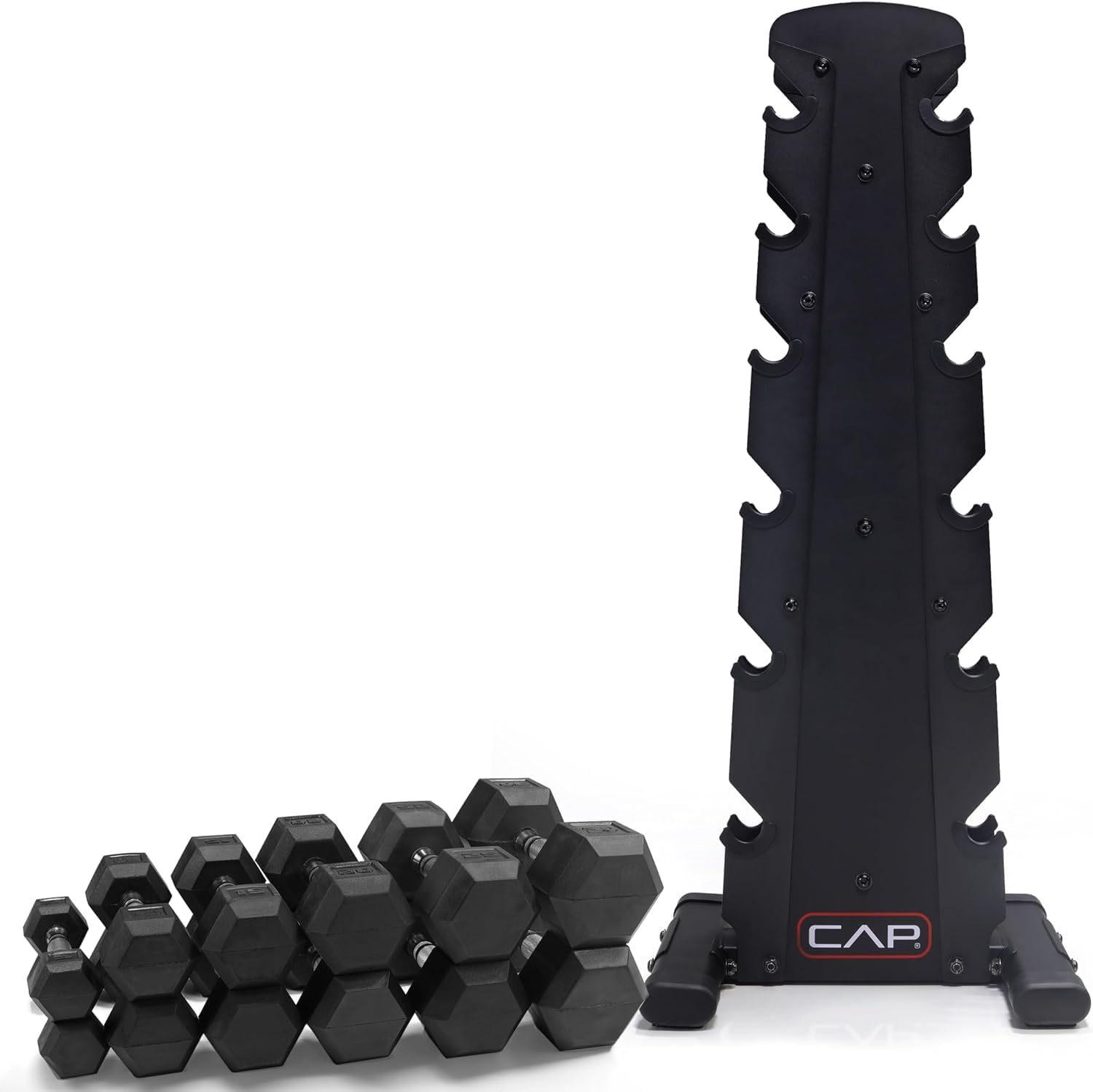 CAP Barbell Rubber Coated Dumbbell Weight Set with Vertical Rack | 100 lb, 150 lb, and 210 lb Options