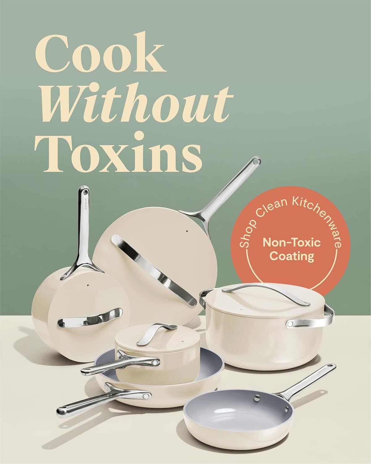 DESIGNED FOR MODERN KITCHENS: With a sleek, minimal aesthetic and smart storage features, this ceramic non-stick cookware set blends form and function. Say goodbye to clutter and hello to organized, beautiful kitchen tools.