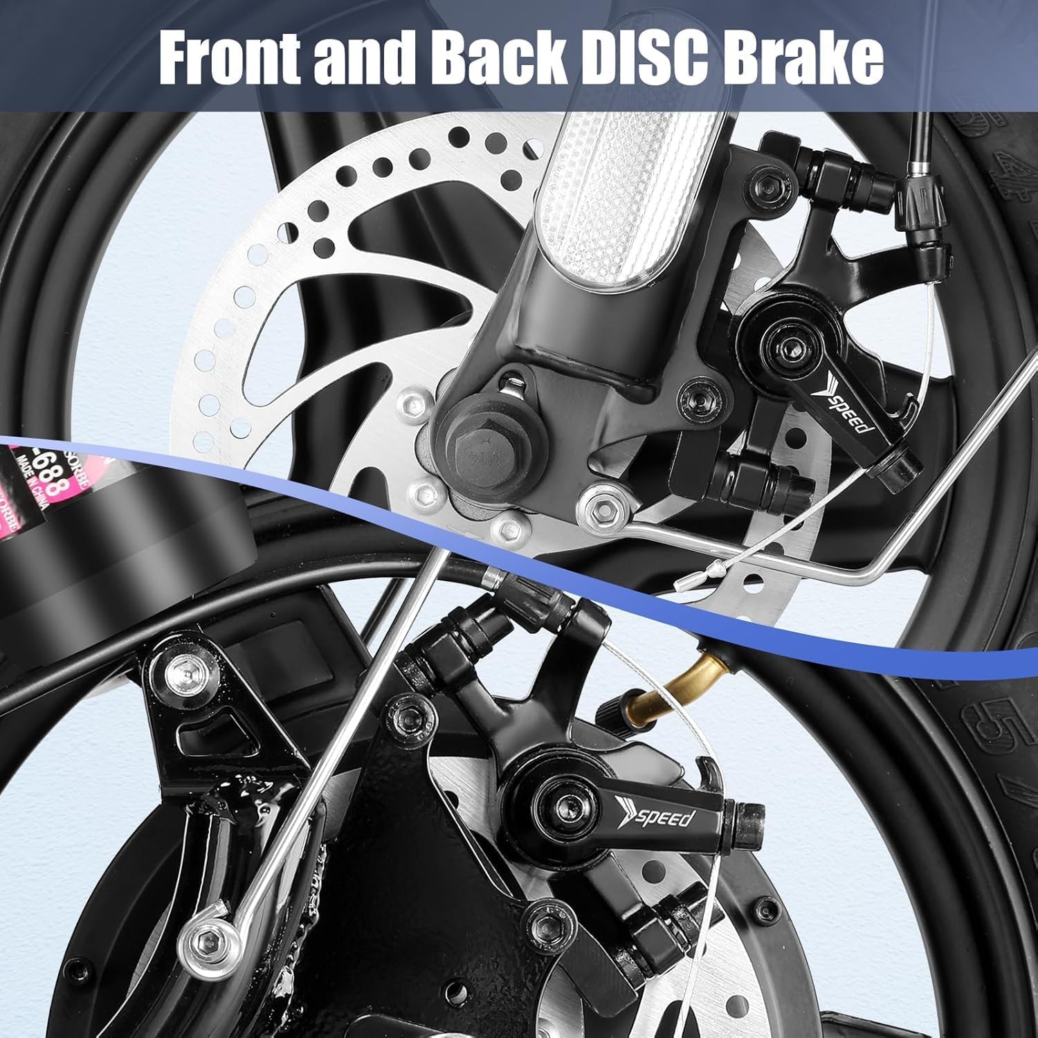 【Stable Braking System and Safety Settings】This electric scooter with Seat for adults has dual disc brakes and Electronic brake system, which can brake quickly to ensure effective braking distance, and the dual lighting system (front light and responsive tail light) provides night lighting, bringing you a safe riding experience