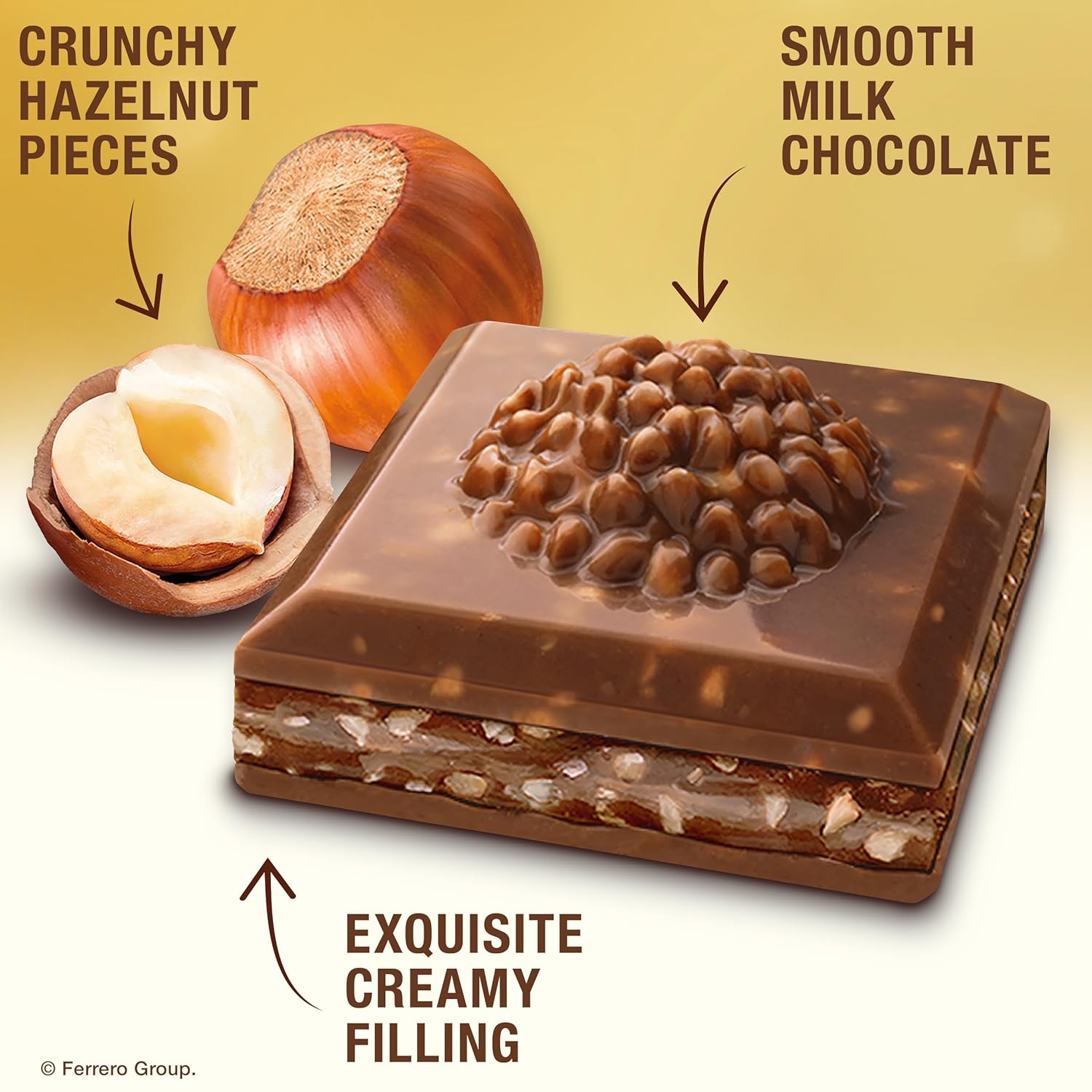 CRAFTED WITH PREMIUM INGREDIENTS: Made with carefully selected ingredients like roasted hazelnuts pieces and creamy filling, and silky milk chocolate to deliver a unique and indulgent flavor experience in every bite