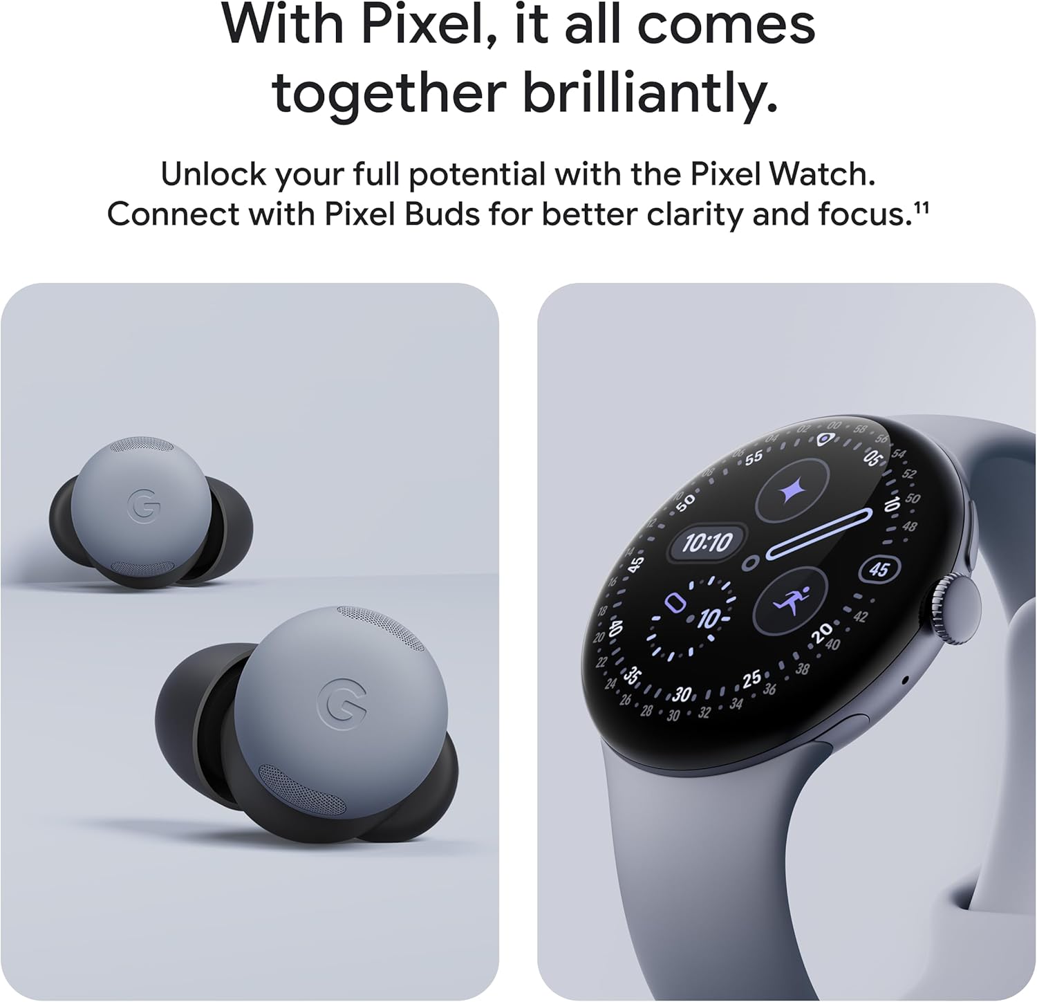 With Pixel, it all comes together brilliantly; unlock your full potential with the Pixel Watch, or connect with Pixel Buds for better clarity and focus[11]