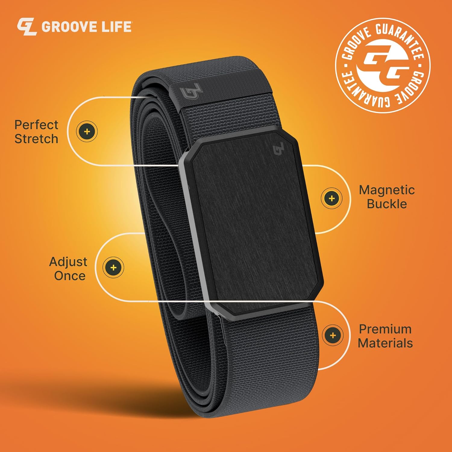 There has never been a blueprint for excellence. Only the chance to try and fail and try again. Here at Groove we strive to reach the top of that hill in everything that we do, testing our ideas over and over until we come up with a product that we couldn’t live without. The Groove Belt is good for the office, the woods, the backyard, and everything in between! Just adjust to fit once and forget. The Groove Belt has the perfect amount of stretch giving you the most comfortable all-day fit ever. The buckle uses high strength, neodymium magnets for an easy, seamless snap-on/snap-off. And includes what we like call Stiff-Tech (aka: no folding in your belt loops). Proprietary webbing, rare-earth neodymium magnets and an A380 aluminum alloy buckle, so that when the apocalypse hits and we all move to Mars, you’ll be ready for anything!