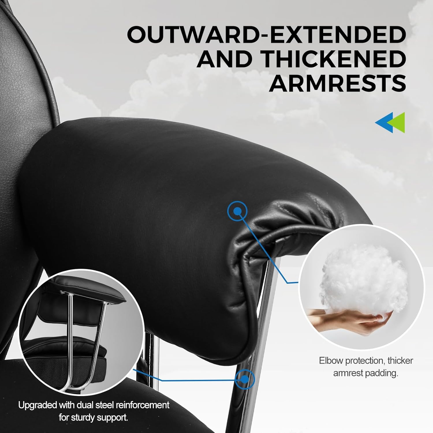 【Built to Last】 The BIFMA-tested five-star base withstands static pressure with a load capacity of 300lbs, and the SGS-3 gas lift passes 120,000+ lift tests. The chair base’s diameter is enlarged for stability during maximum recline. The metal armrest frame, in contrast to nylon armrests in other desk chairs, provides enhanced strength and durability.