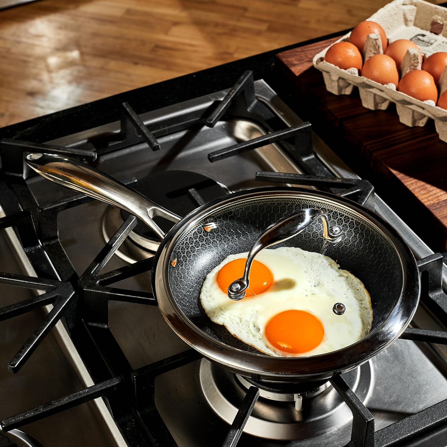 HexClad Hybrid Nonstick 8-Inch Frying Pan with Tempered Glass Lid, Stay-Cool Handle, Dishwasher-Friendly, Oven-Safe Up to 900°F, Induction Ready, Compatible with All Cooktops