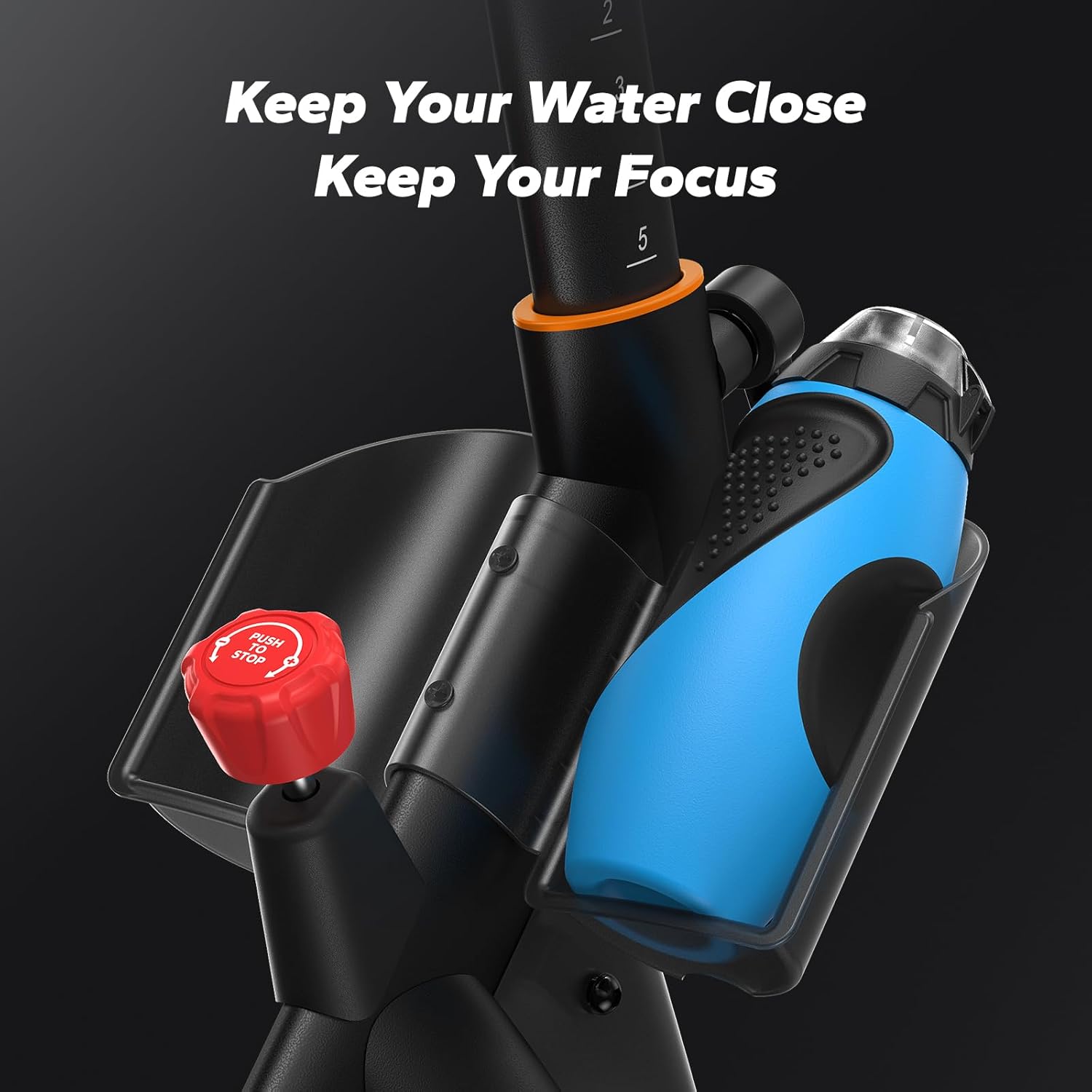 Versatile Workout Bike: This indoor exercise bike features a 4-way adjustable handlebar and 4-way adjustable seat, fitting users from 4’8” to 6’4”. With a convenient dumbbell holder, this fitness bike lets you combine cardio and strength training effortlessly. Store dumbbells within reach for a full-body workout, making every session more efficient and effective.