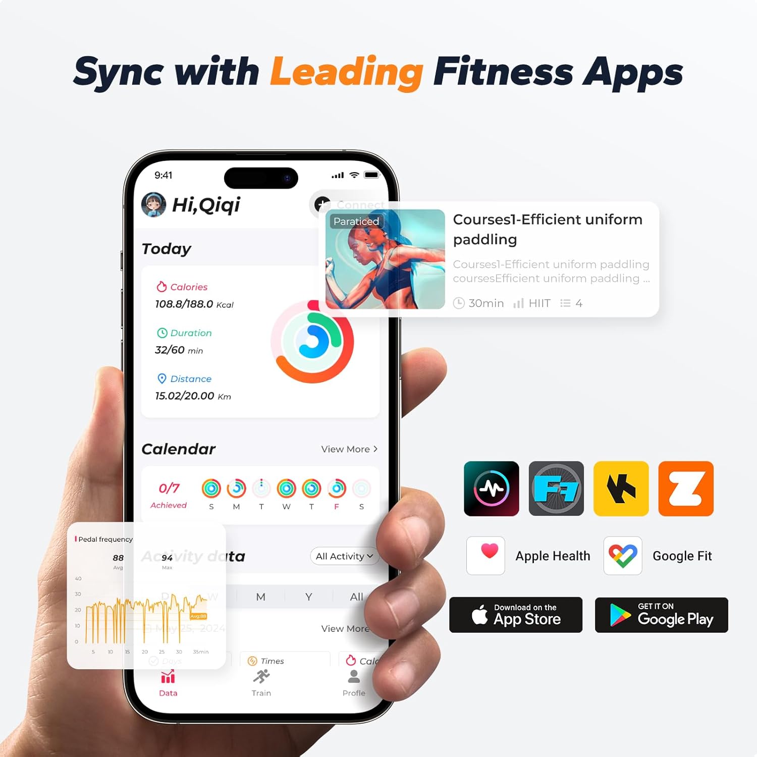 Real-time Fitness Tracking: The exercise bikes for home connects with the self-developed Merach APP and FantomFite gaming app. Monitor key workout stats in real time, including resistance level, distance, time, and calories. Easily sync your data with Google Fit and Apple Health for a more complete fitness overview.