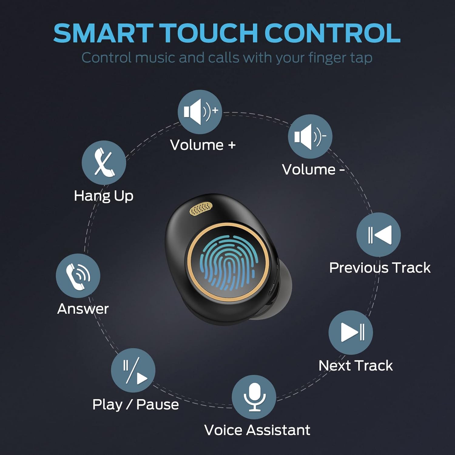 【Smart Touch Control Headphones 】The simple and convenient touch control system is more user friendly, tap once to play/pause music and answer calls, double tap to skip forward/backward, hold to adjust the volume. You can easily control it without operating the phone.