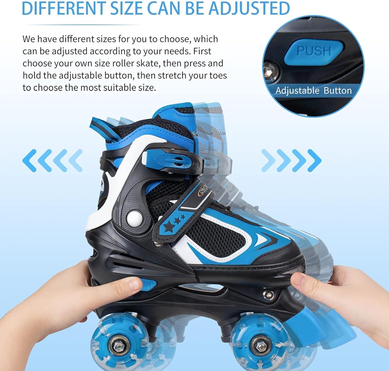 Nattork Kids Roller Skates for Boys Girls Kids, 4 Sizes Adjustable Quad Skates with All Light up Wheels – Birthday Gift for Indoor Outdoor Sports