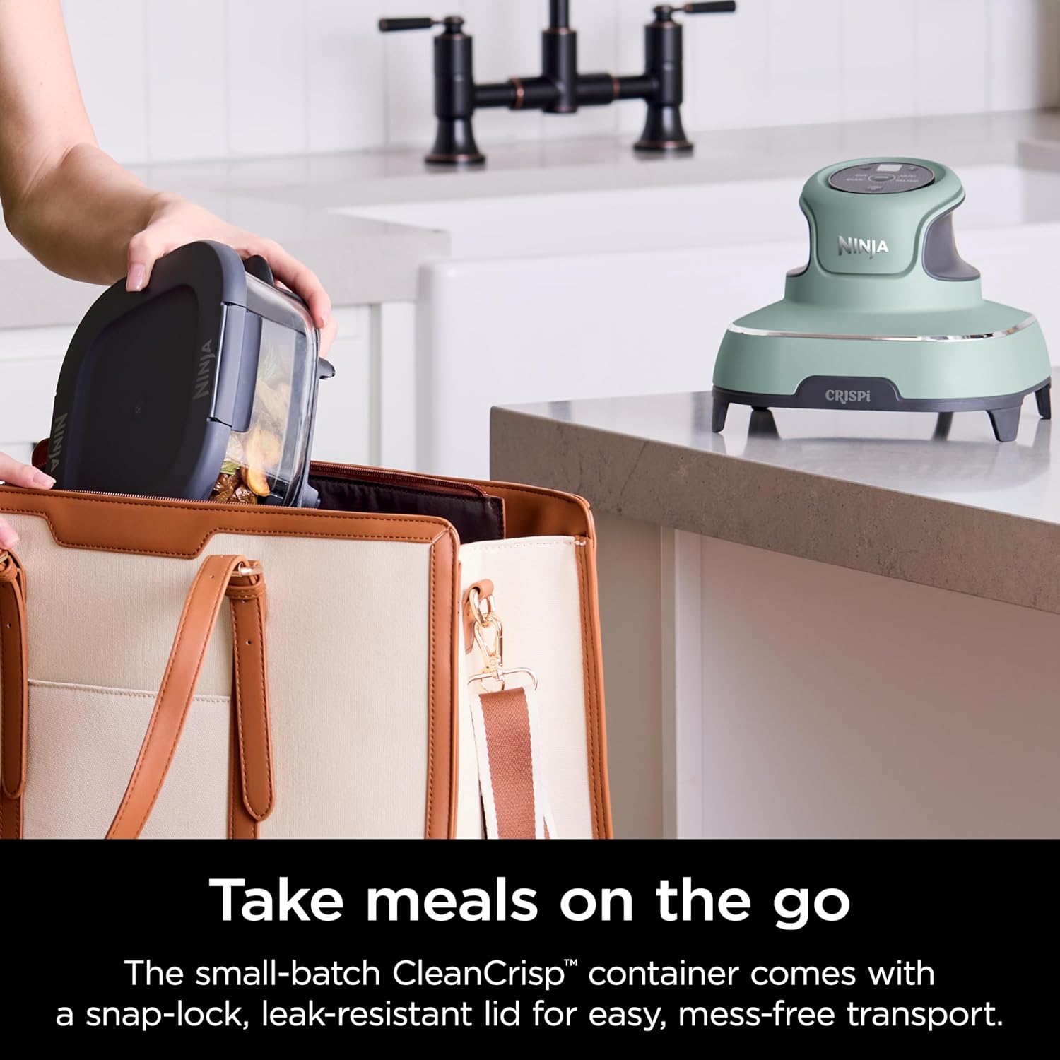 The Ninja Crispi® Portable Glass Cooking System is a compact powerhouse that packs the 1500W power of a full-sized air fryer* into a portable design. It includes a small 6-cup and larger 4-qt CleanCrisp™ container. Whether you’re making quick, single-serve meals in just 7 minutes or sharing crispy snacks on the go, the Ninja Crispi® makes it effortless. Designed for nontoxic cooking and storing without forever chemicals — PFAS and PTFE. All Crispi accessories are dishwasher safe and nestable for easy cleaning and storage. *Based on wattage compared to Ninja AF100
