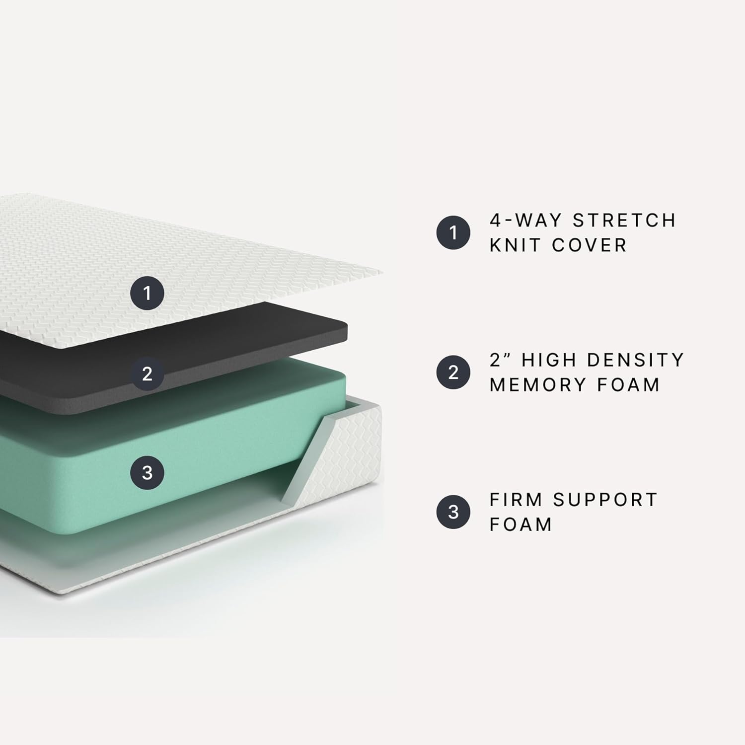 SUPPORTIVE SLEEP: The memory foam layer is supported by an extra-thick base of firm support foam, ensuring long-lasting durability and stability for all sleep positions. Support foam provides a strong foundation for consistent performance over time