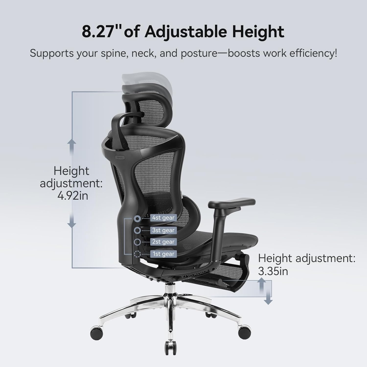 SIHOO Doro C300 Ergonomic Office Chair with Footrest, Ultra Soft 3D Armrests, Dynamic Lumbar Support for Home Office Chair, Adjustable Backrest Desk Chair, Swivel Big and Tall Computer Chair (Black)
