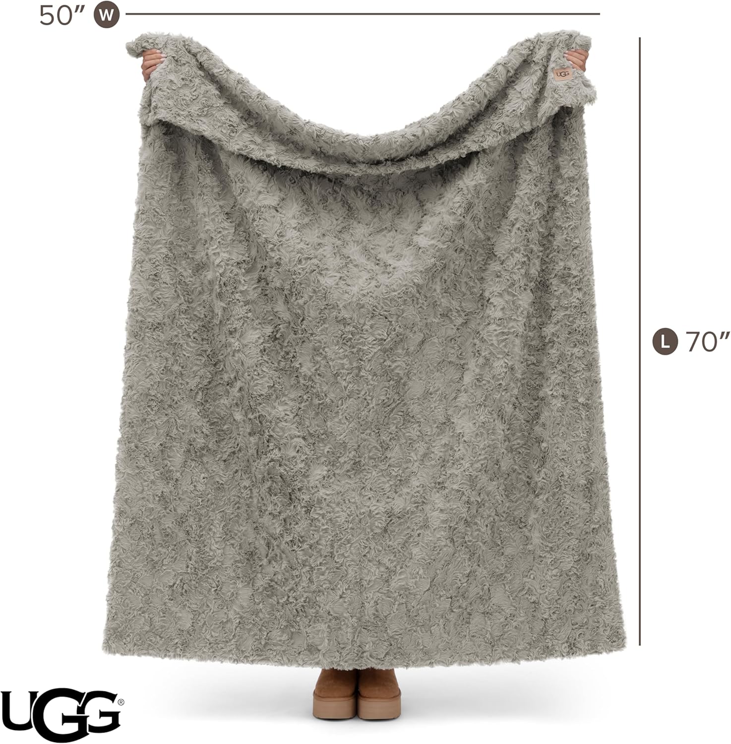 Enhance your home decor with the UGG Adalee Faux Fur Throw Blanket, featuring a lightweight, double-sided design suitable for every season. Crafted from hypoallergenic faux fur, this cozy blanket showcases a unique textured faux fur surface with an elegant sculpted style, enhancing modern home decor. Its double-sided texture provides versatility, making it a beautiful throw blanket for couch layering, bedroom decor, or living room decor. Designed to offer balanced warmth and softness, these fluffy throw blankets complement teen girl room decor, adding charm and comfort to any space. As a fuzzy blanket option for apartment decor, Adalee faux fur throws easily blend into various interior styles, from minimalist neutrals to vibrant color themes. Easy-care machine washable faux fur maintains its softness and vibrant color through repeated washes. The neutral light grey hue makes this throw blanket versatile for beds, couches, or chairs, suiting a variety of room aesthetics. Measuring 50-inch x 70-inch or 127cm x 177cm with a 400 GSM, this textured faux fur gray blanket provides relaxed comfort, warmth, and stylish functionality.