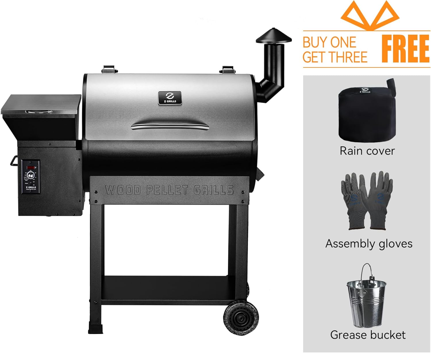 Z GRILLS Wood Pellet Smoker Grill, 8 in 1 BBQ Grill with Auto Temperature Control, 697 sq in Cooking Area for Backyard, Patio and Outdoor Cooking, 7002E, Sliver